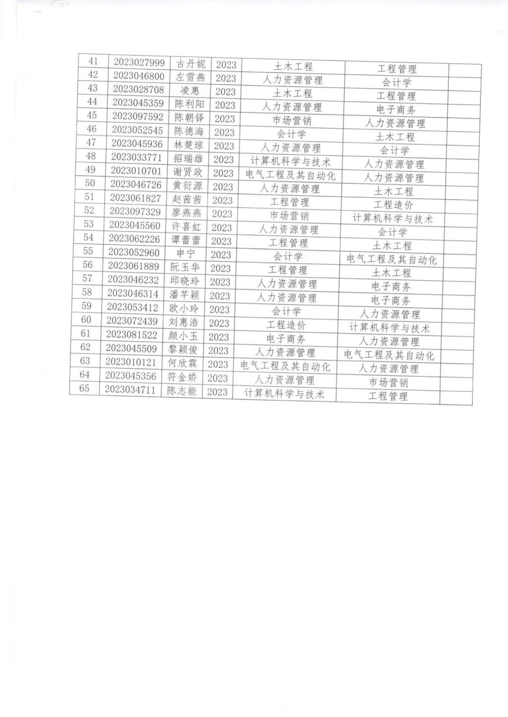 关于继续教育学院2023级谢宁等65位同学转专业的公示_