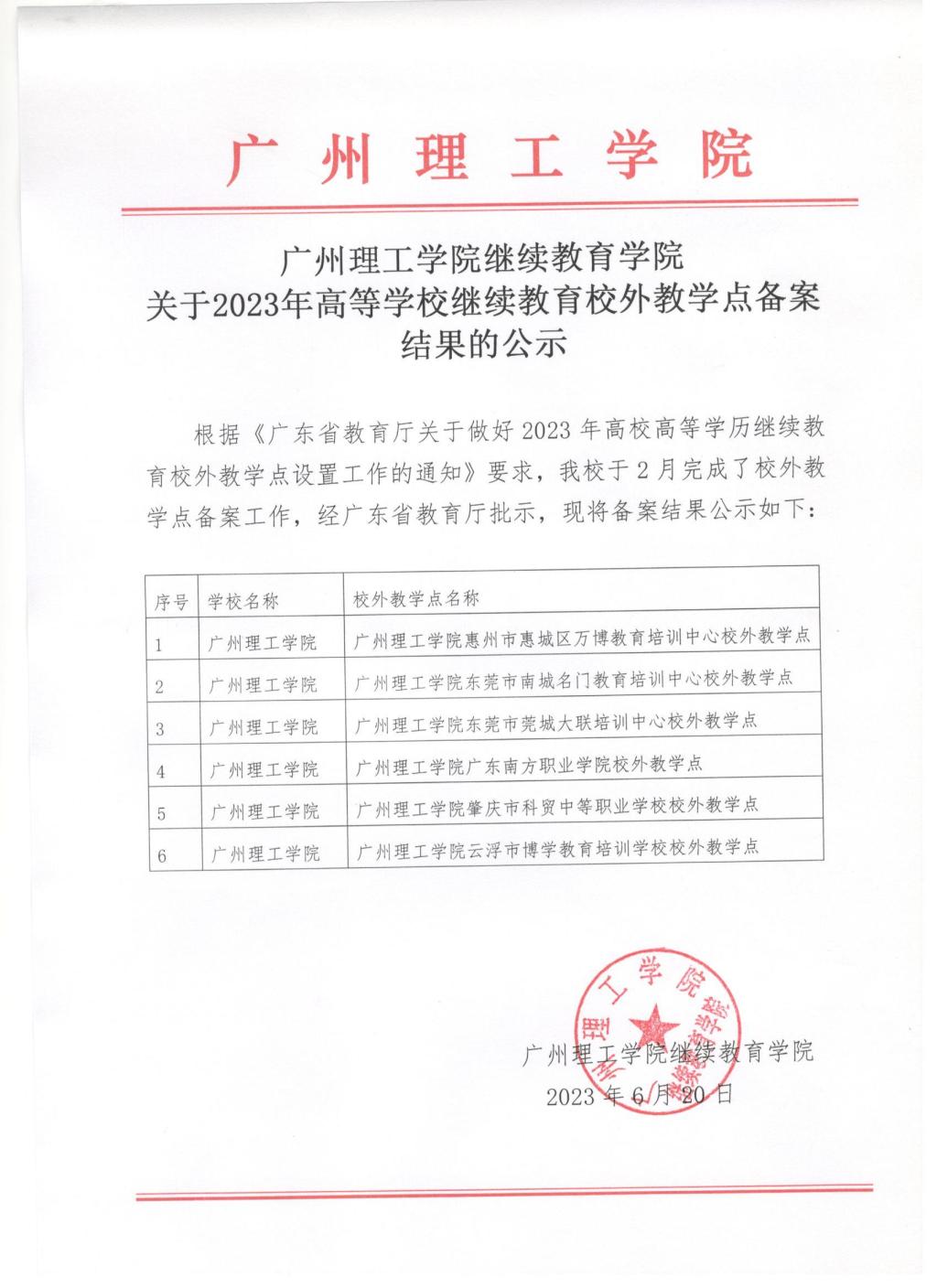 广州理工学院继续教育学院关于2023年高等学校继续教育校外教学点备案结果的公示