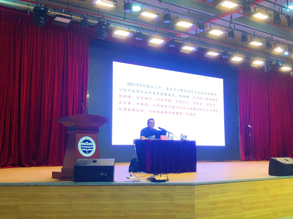 (唐然)5月13日上午,根据春季学期“三全育人”素质教育周安排,广州理工学院在新学术报告厅召开全校教职工大会,胡社军校长、黄圣诚书记出席并做师德师风建设辅导报告,广东技术师范大学李尚旗教授应邀为全校教职工做党史学习教育专题报告。大会线上线下全程全校直播。