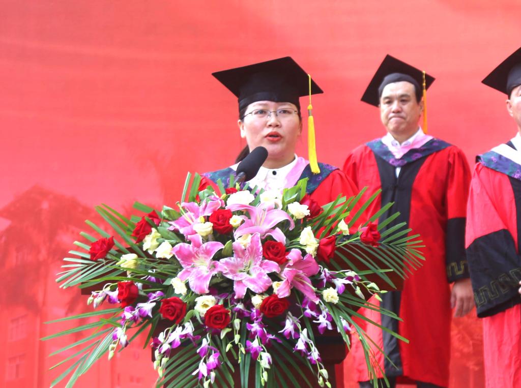 大学毕业既是一个完美的终点又是一个新的起点。教师代表、广东省民办高校优秀教师、经济管理学院常务副院长李美珍寄语大家: