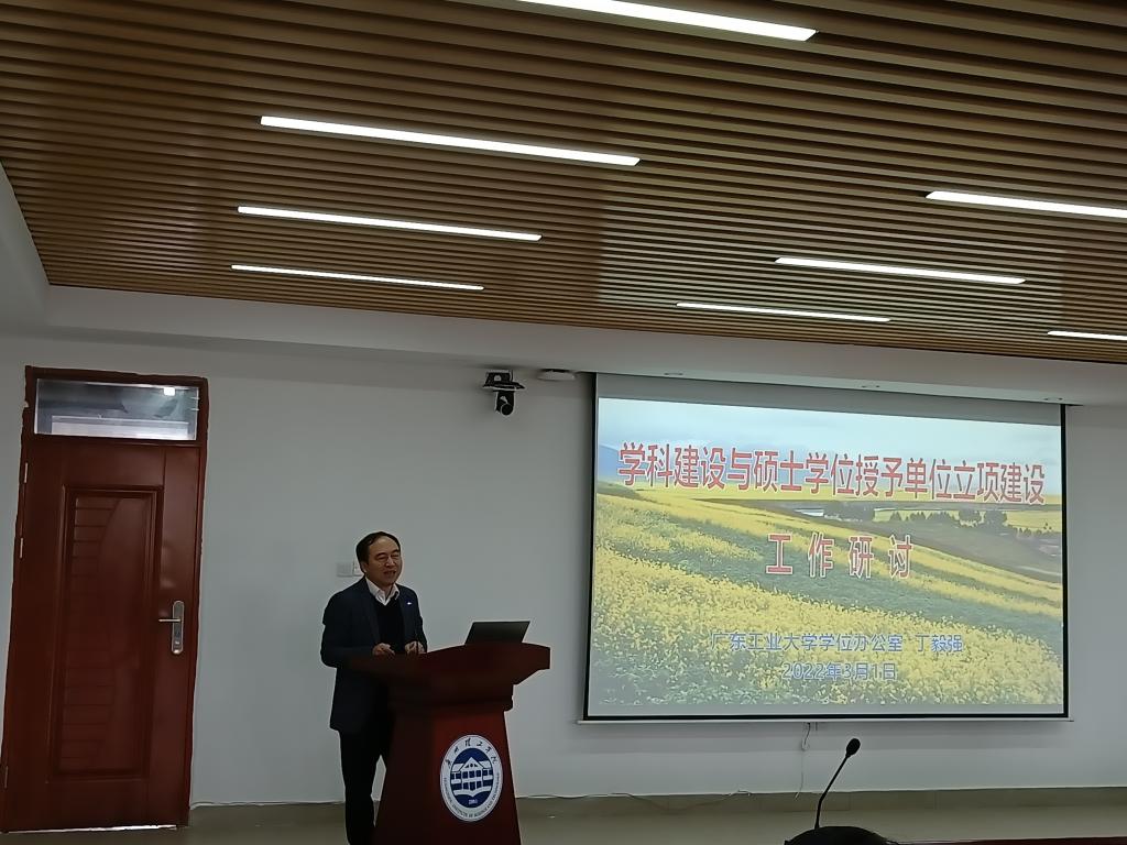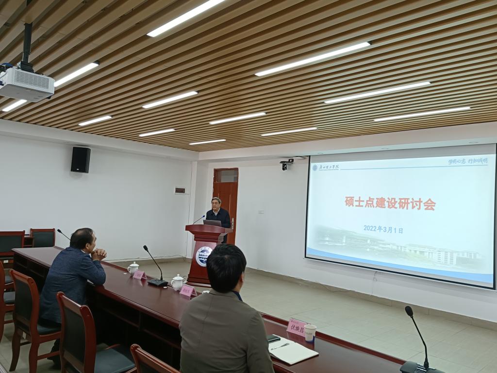 (代婵 黄菲青)3月1日,学校在行政楼815会议室召开硕士点建设研讨会,中国学位与研究生教育信息委员会委员、广东省学位与研究生教育学会常务理事、广东工业大学管理学院丁毅强教授应邀做辅导报告,伏焕昌常务副校长、二级学院院长、科研副院长、学科带头人、青年骨干教师和机关职能部门相关人员出席会议。胡社军校长主持报告会。