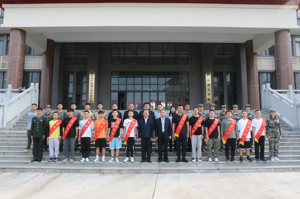 欢送会上,黄圣诚书记、肖海副书记为入伍同学佩戴绶带。黄书记代表学校对入伍同学表示热烈祝贺,肯定了他们积极响应国家号召、敢于担当、携笔从戎,将实现个人梦融入祖国强军梦。即将步入军营之际,黄圣诚用总书记的话勉励同学们:听党指挥、能打胜仗、作风优良,秉持广州理工校训精神,在校园潜心修学,在军营也要不怕苦不怕累,顽强拼搏,开拓进取。