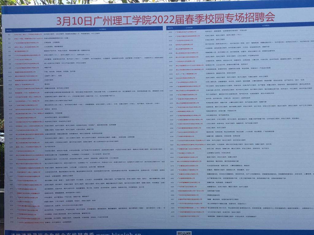 (黄菲青 杨晓东)3月10日,广州理工学院2022届春季校园招聘会篮球场举行,93家用人单位参会并现场提供2500个就业岗位。