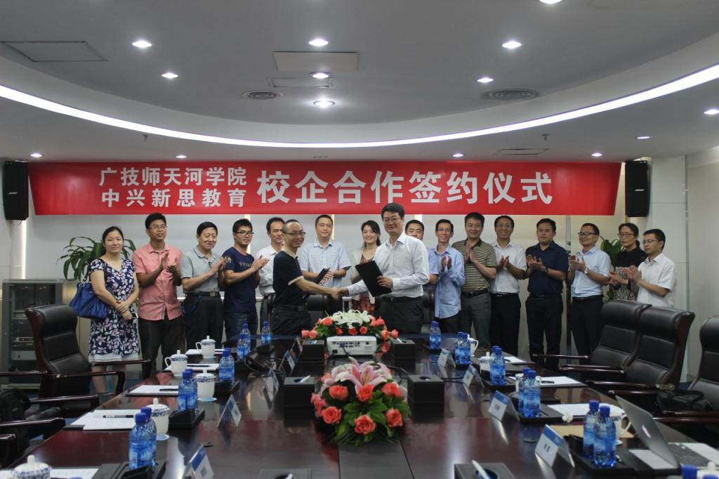 | 学校和中兴公司双方代表签订校企合作协议 |