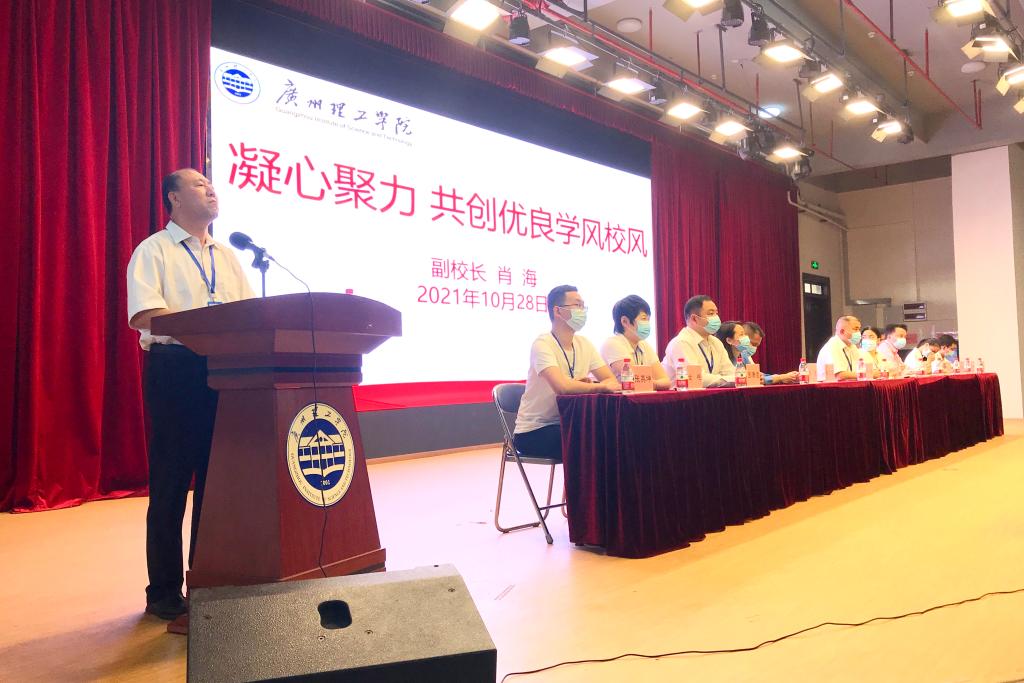 10月28日下午,我校组织召开了学风校风建设工作动员大会,进一步创建良好的校园学习、生活环境,形成浓厚的学习风气,努力营造团结和谐、奋发向上的班级集体,进一步加强学风与校风的建设。副校长肖海、学生管理部部长张志红、团委书记彭文刚、学生处副处长肖柳以及各学院党总支书记出席大会,全体辅导员、全校各班班长和纪委参加了大会,大会由张志红部长主持。