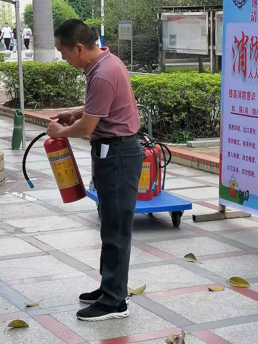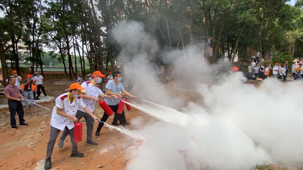 此次培训重点围绕用电用气安全、火灾隐患排查和发生火情后如何组织疏散等要点展开详细讲解,并就灭火器的正确使用方法进行实操演练。