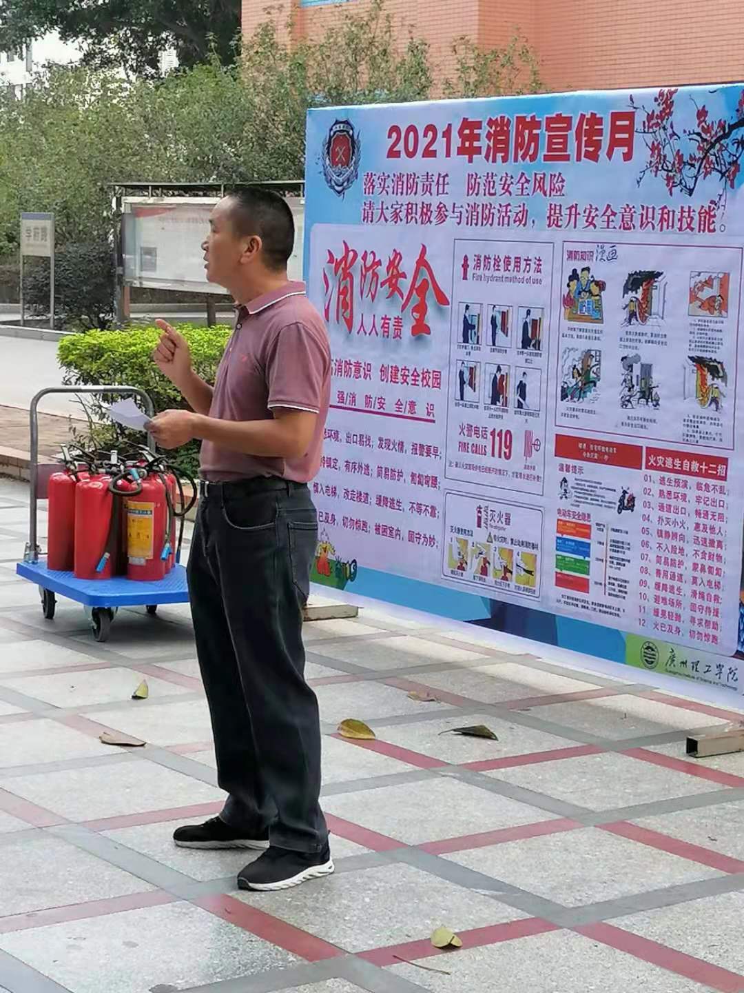 为进一步增强食堂、商铺从业人员的消防安全意识,提高对火灾事故的应急处置能力,11月4日中午,在第30个“119”全国消防日来临之际,学校消防办、后勤办组织开展了一次消防知识培训和灭火器材实操演练。校内各食堂、商铺从业人员230余人参加。学校消防办黄伟平主任主讲。