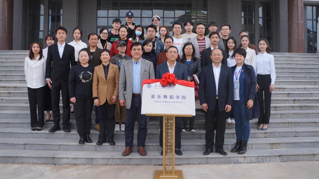 11月9日下午,为优化学科专业设置,加强学术研究和学科建设,促进音乐舞蹈专业发展,学校在行政楼隆重举行音乐舞蹈学院成立揭牌仪式,校长胡社军、党委书记黄圣诚、副校长张世梅出席揭牌仪式。
